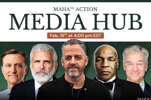 Please join us on Wednesday, February 18, from 4pm - 5pm Eastern, for the MAHA Action Media Hub, featuring some of the biggest stars in the MAHA…