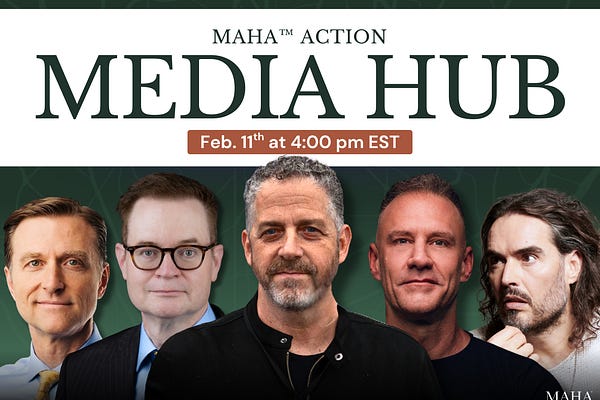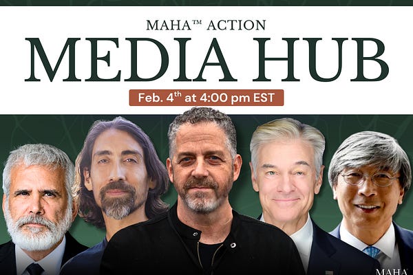 Please join us on Wednesday, February 4, from 4pm - 5pm Eastern, for the MAHA Action Media Hub, featuring the most influential voices of the MAHA…