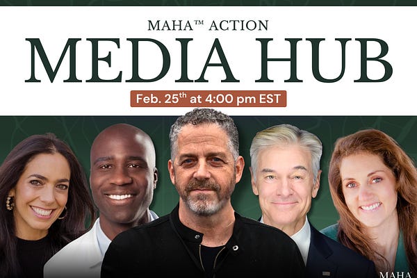 Please join us on Wednesday, February 25, from 4pm - 5pm Eastern, for the MAHA Action Media Hub, featuring some of the most prolific leaders of the…