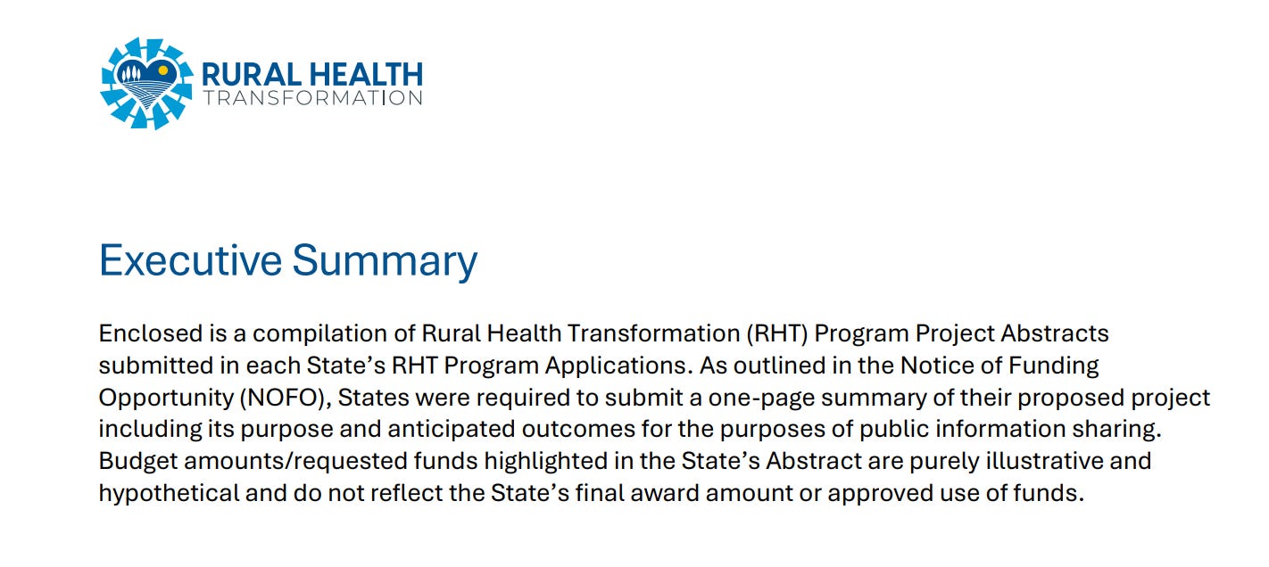How will the RHTP’s billions in awards be distributed ? For year one, 2026, the allotted $10 billion will go to individual states, as indicated here, with Texas and Alaska topping the list.