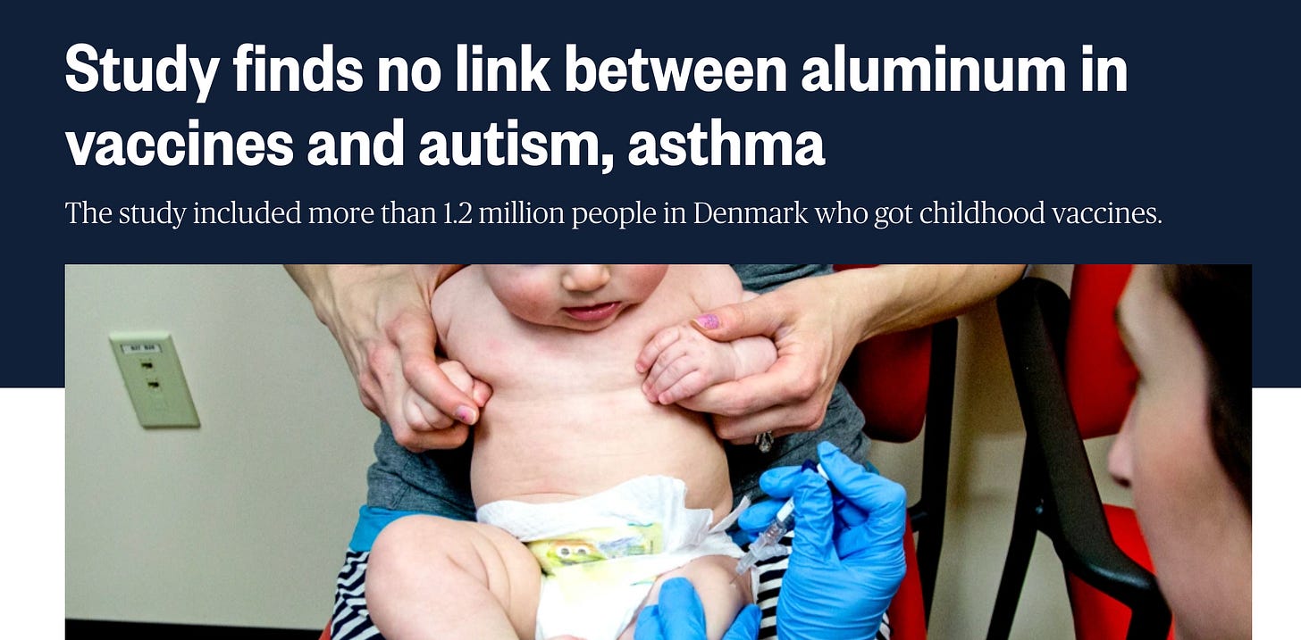 Predictably, legacy media failed to scrutinize the Danish study. Instead of digging deeply into the research the way science journalists once did, they read press releases and pumped out copy and headlines that blindly supported their desired narrative: aluminum in vaccines doesn’t cause autism or any other major illness.