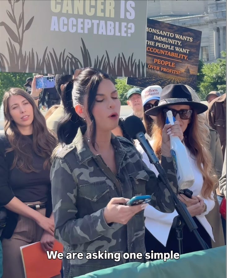 Hari also took aim at politicians backing liability protections. “You cannot claim to care about health while protecting poison,” she said. “You cannot tell Americans to eat real food while protecting the cancer-causing chemicals sprayed on it.”