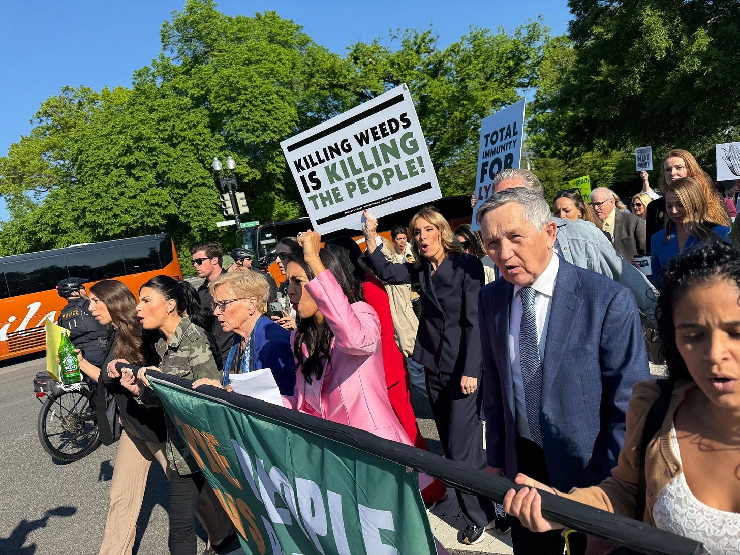 Wellness advocate Kelly Ryerson, known online as Glyphosate Girl, received a warm welcome from supporters who recognized her years of activism on the issue. Ryerson recalled attending one of the first glyphosate cancer trials and finding almost no public outrage. “I assumed there’d be a big protest against Monsanto because who doesn’t hate Monsanto?” she said. “But I walked there and I was essentially alone.” Looking over Monday’s crowd, she declared: “The reinforcements have arrived . . . America is awake and she is here at the Capitol to fight and to win.”
