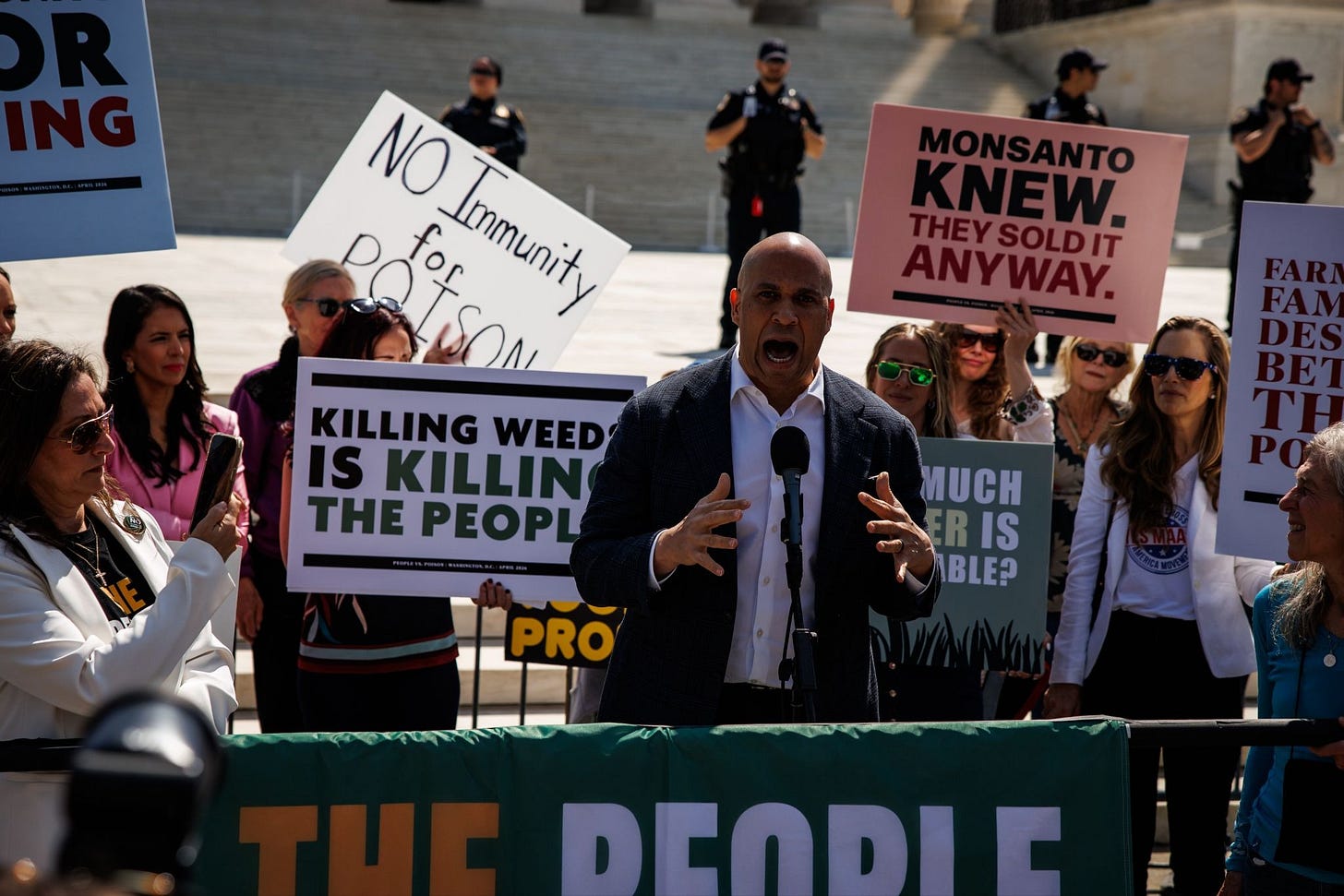 Booker accused lawmakers of trying to quietly protect chemical interests through Congress. “I see now, on the House side of the Capitol, them trying to stick things in the farm bill that would do the corporate bidders work for them,” he said. “To try to stick things in the farm bill that would protect a broken system that is literally killing people around our country.”