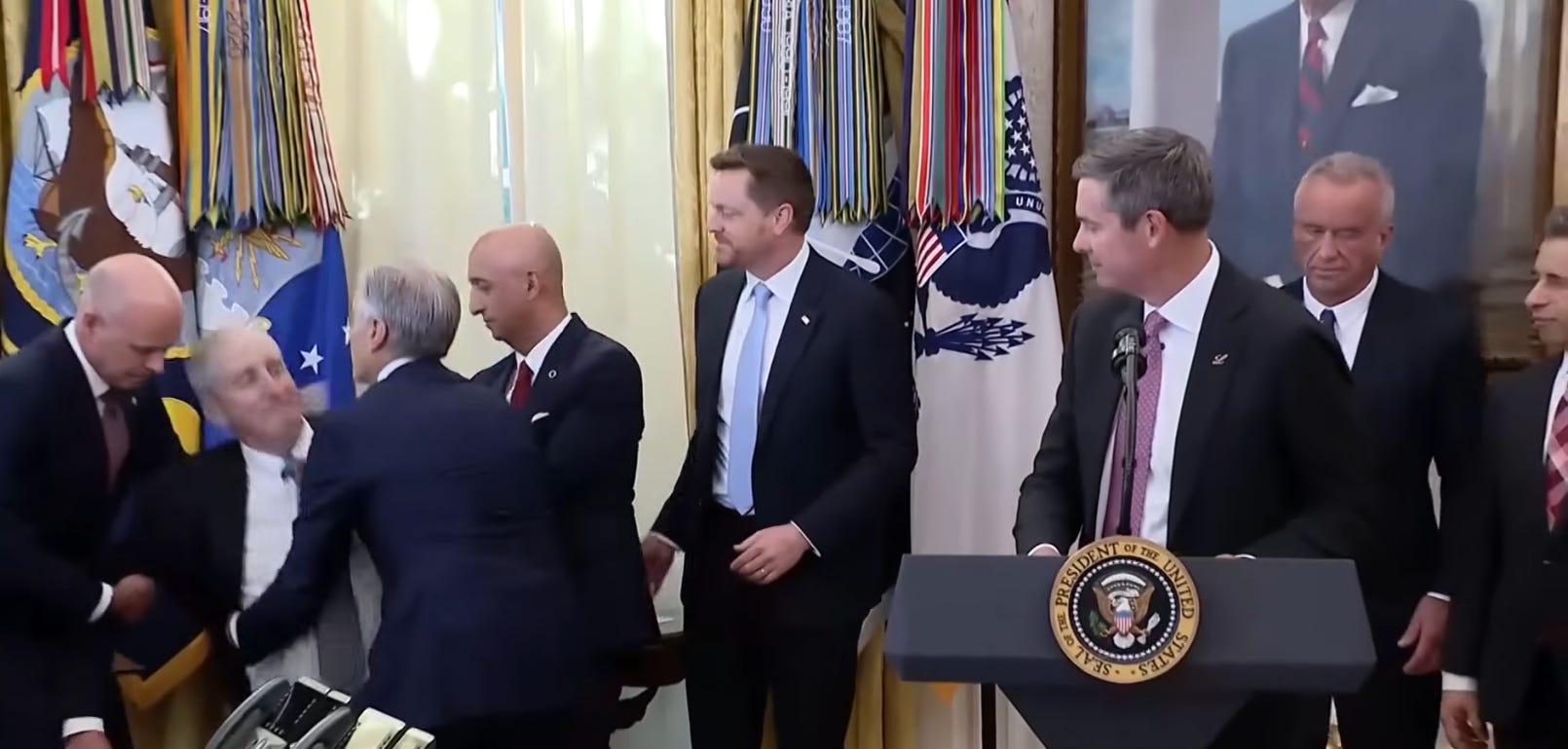During the announcement, Novo Nordisk executive Gordon Findlay collapsed suddenly as Dr. Oz, an experienced cardiac surgeon, rushed to help before the White House medical unit took. The press conference was halted for approximately an hour. When it started again, the press learned that Findlay was alright.