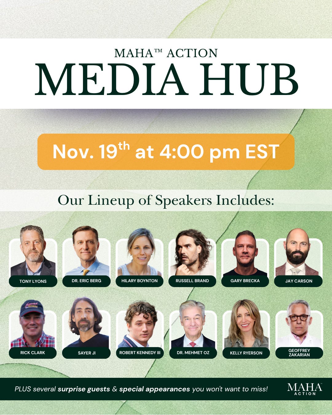 Please join us on Wednesday, Nov. 19, from 4pm - 5:10pm Eastern, for an action-packed, star-studded episode of MAHA Action’s weekly media hub!
