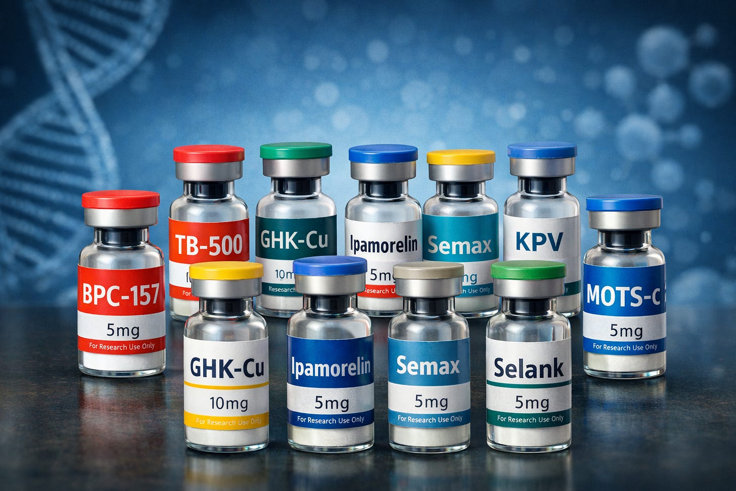 Every day, in bathrooms, bedrooms, and kitchens across America, thousands of people draw up compounds from tiny vials and inject themselves with substances with names like: BPC-157, TB-500, GHK-Cu, Ipamorelin, Semax, Selank, KPV, KLOW, Wolverine, and MOTS-c – many of which are on Kennedy’s ‘to review’ list.