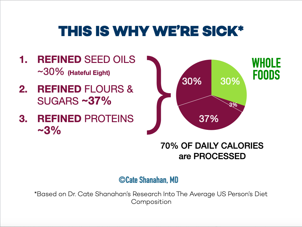 "But we’ve overlooked this fact: seventy percent of the average American’s calories now come from the three refined macros, leaving only 30 percent for real food.