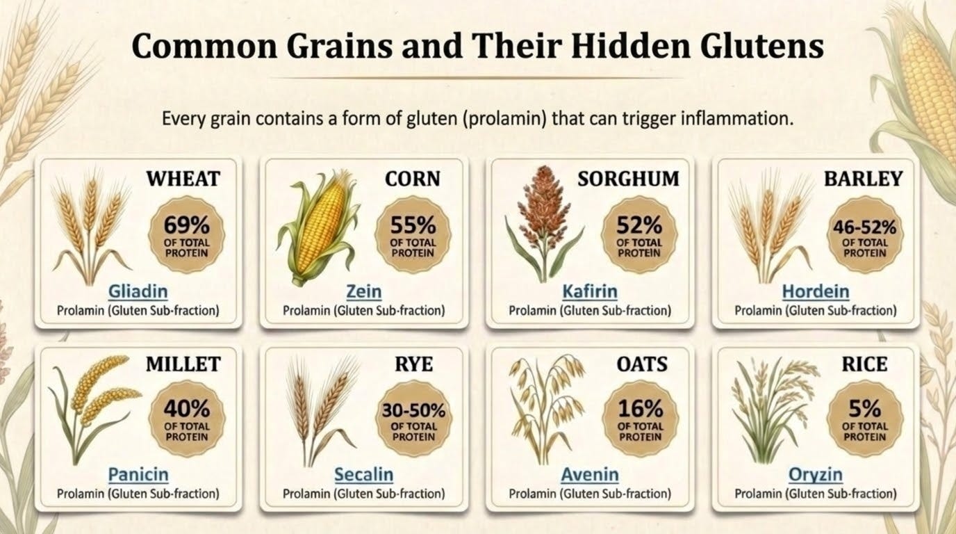 Prolamin is the gluten fraction most associated with triggering an immune response. While the FDA only regulates the prolamins in wheat (gliadin), rye (secalin), and barley (hordein), science has identified that every grain contains its own version of these proteins, including corn and rice.