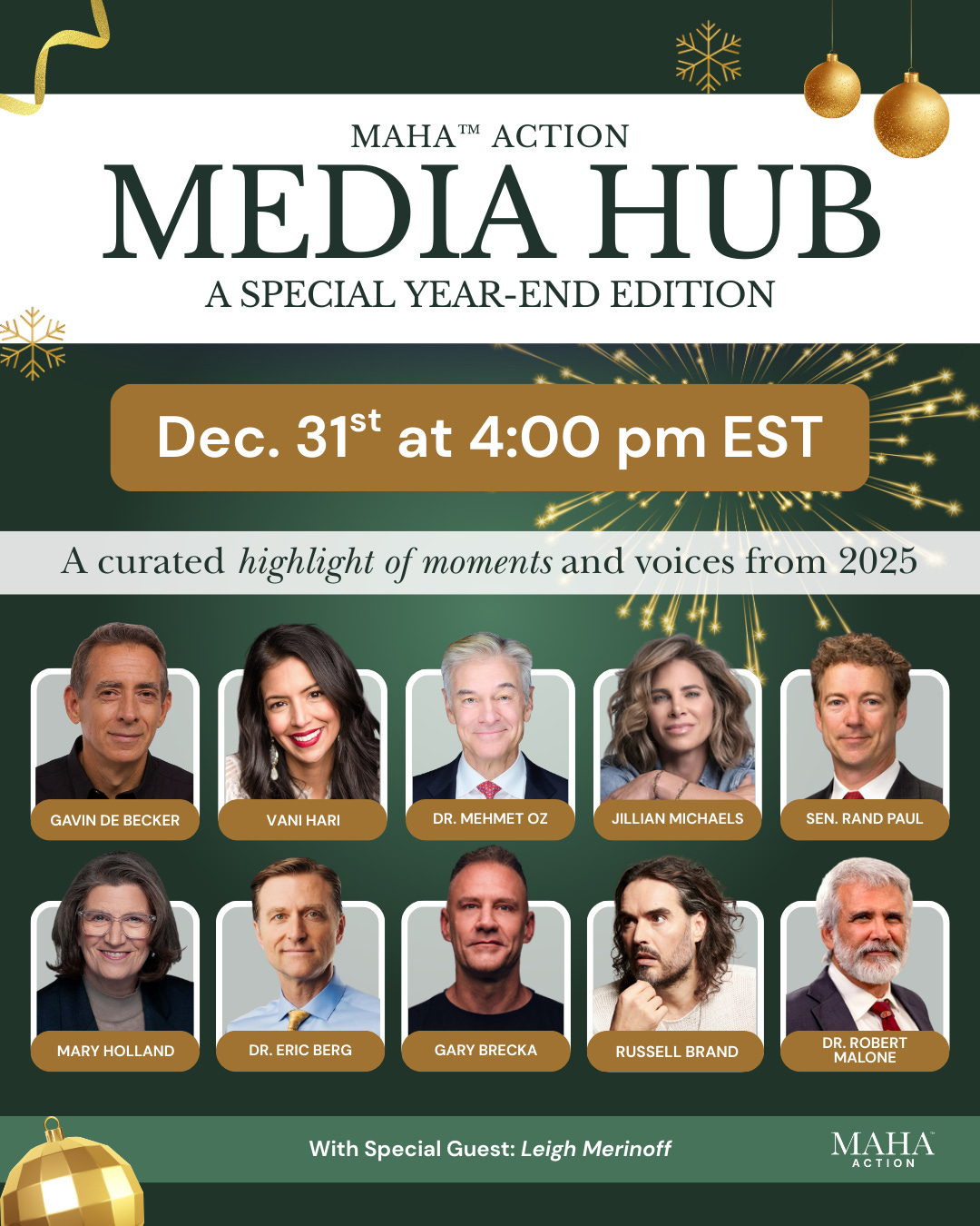 Please join us on Wednesday, December 31, from 4pm - 5pm Eastern, for a special edition of the MAHA Action Media Hub, featuring a curated selection of resonant moments by regular guests you’ve seen live over the last months.