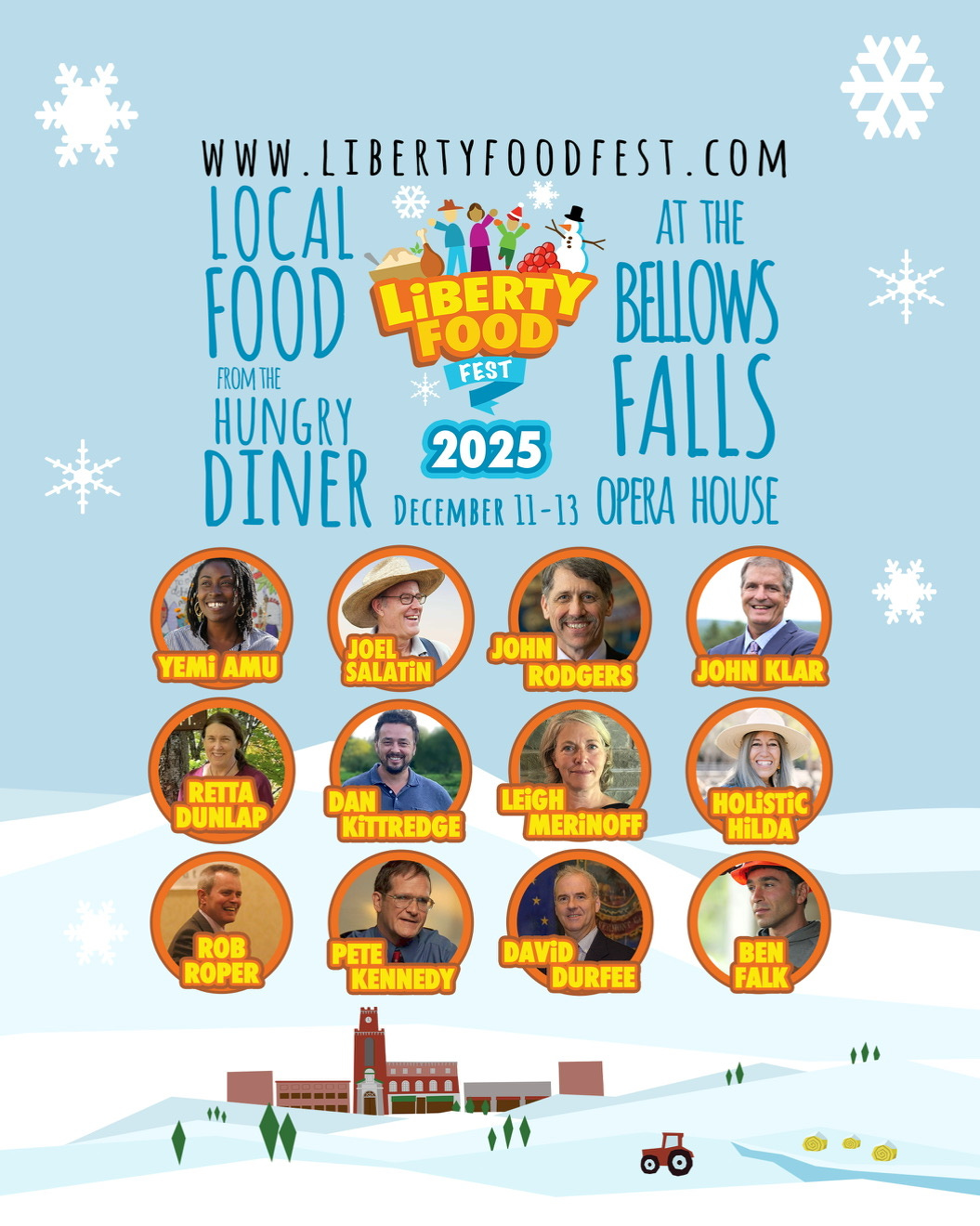 National and international leaders in the local food movement will descend on tiny Bellows Falls, VT for the third annual Liberty Food Fest, to be held Dec. 11 -13 at the Bellows Falls Opera House and The Hungry Diner.