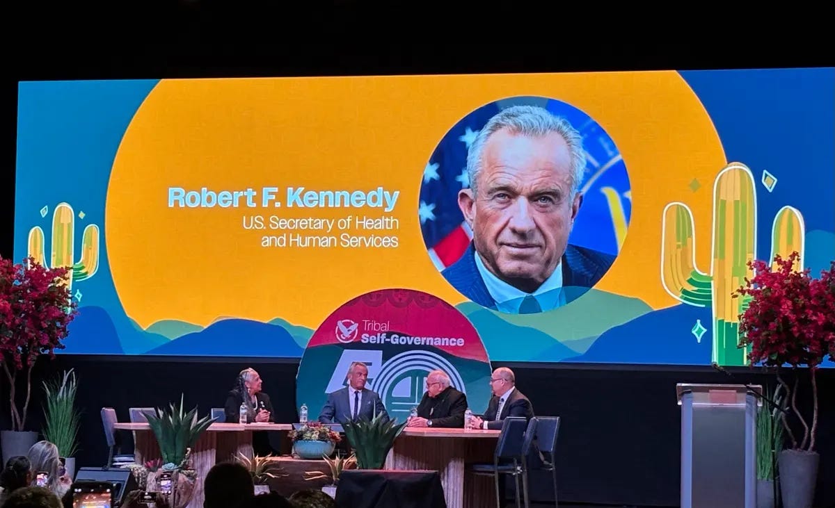 Secretary Kennedy spoke at a tribal conference in Arizona’s Gila River Indian Community. In his remarks, Kennedy proposed a $1.1 billion increase in Indian Health Service (IHS) funding for 2027 while highlighting his commitment to Native American health issues like substance abuse and disease prevention.