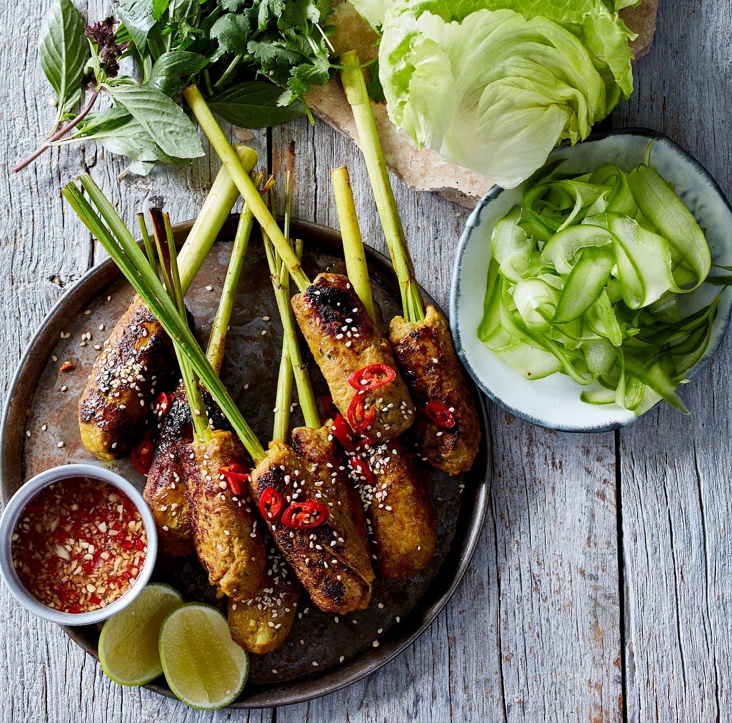 When Evans talks about reconnecting with the joy of cooking from scratch, you can almost taste the flavor bursting out of the Thai Pork Skewers with Lettuce Cups & Nam Jim, a dish that’s as fun to eat as it is nourishing.