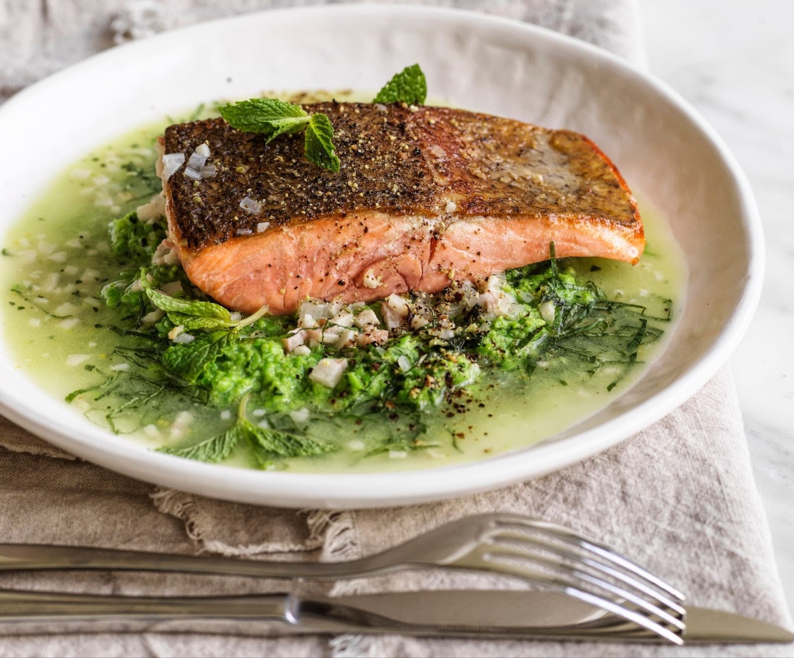 This cookbook excels at taking ancestral, nutrient-dense foods, and recreating them in modern, tasty, family-friendly ways. When Evans talks about the power of wild-caught seafood and the benefits of omega-3s, it comes alive with recipes like Wild Salmon with Minted Pea Purée and Lemon Broth – elegant, fresh, and deeply restorative.