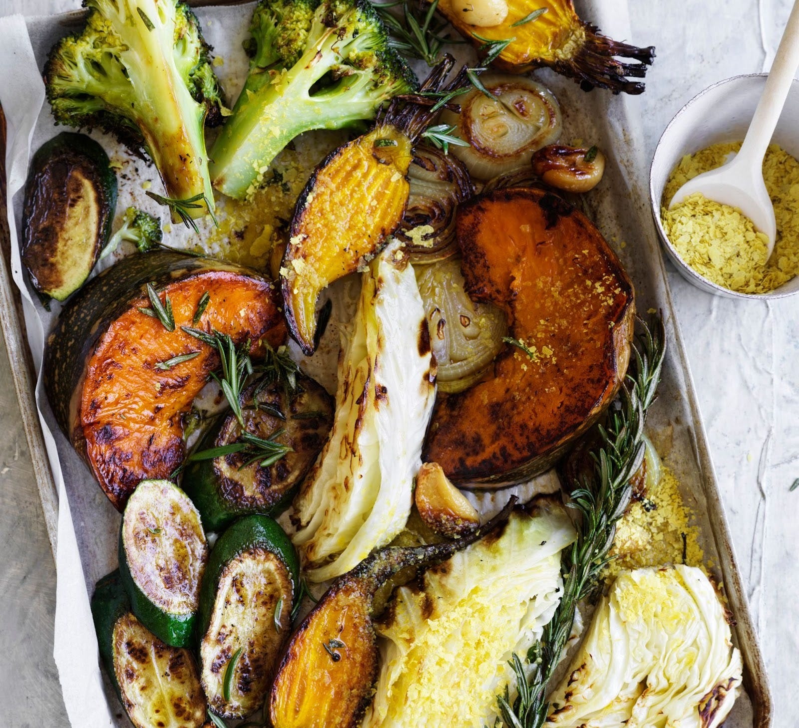 When Evans talks about the health attributes of organic, seasonal produce, it’s easy to get hungry looking at baked, blistered cabbage, caramelized squash, rosemary, garlic, and nutritional yeast—the kind of “simple food cooked well” that makes you rethink vegetables entirely.