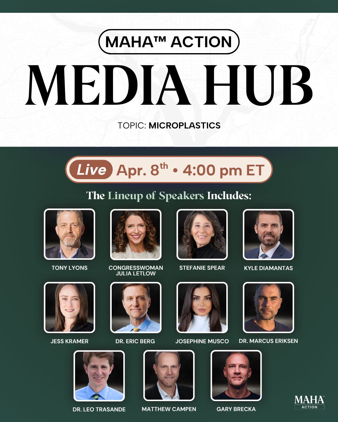 Please join us April 8, from 4pm - 5pm Eastern, for the MAHA Action Media Hub, featuring the latest on the HHS/ EPA war on microplastics.