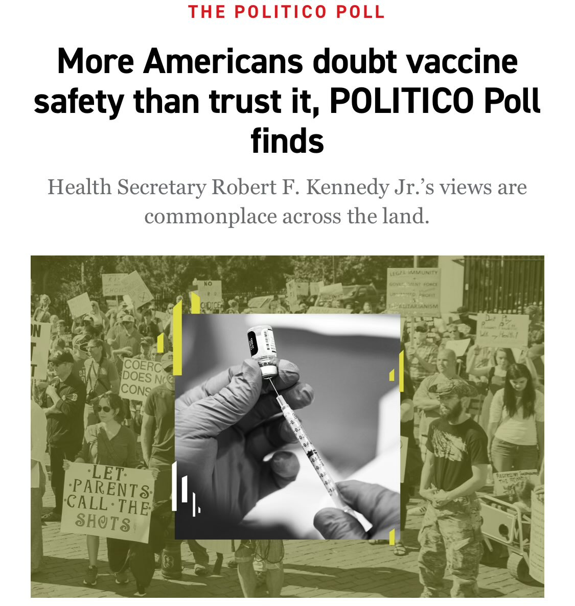 A new Public First poll by POLITICO, of 3,851 U.S. adults, found significant public support for core medical freedom issues. A plurality of Americans expressed concerns about vaccine risks and supported greater individual choice.