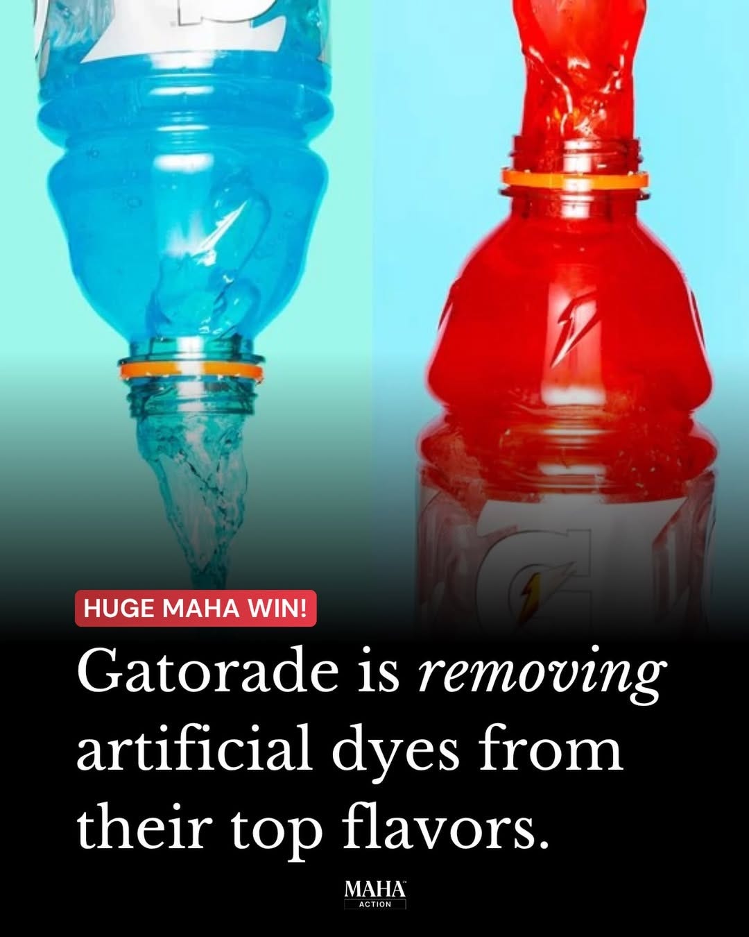 Secretary Kennedy thanked Gatorade for its decision to remove artificial FD&C colors from its beverages. Kennedy added that the company will replace artificial colors with FDA-approved plant-based dyes from fruits and vegetables.