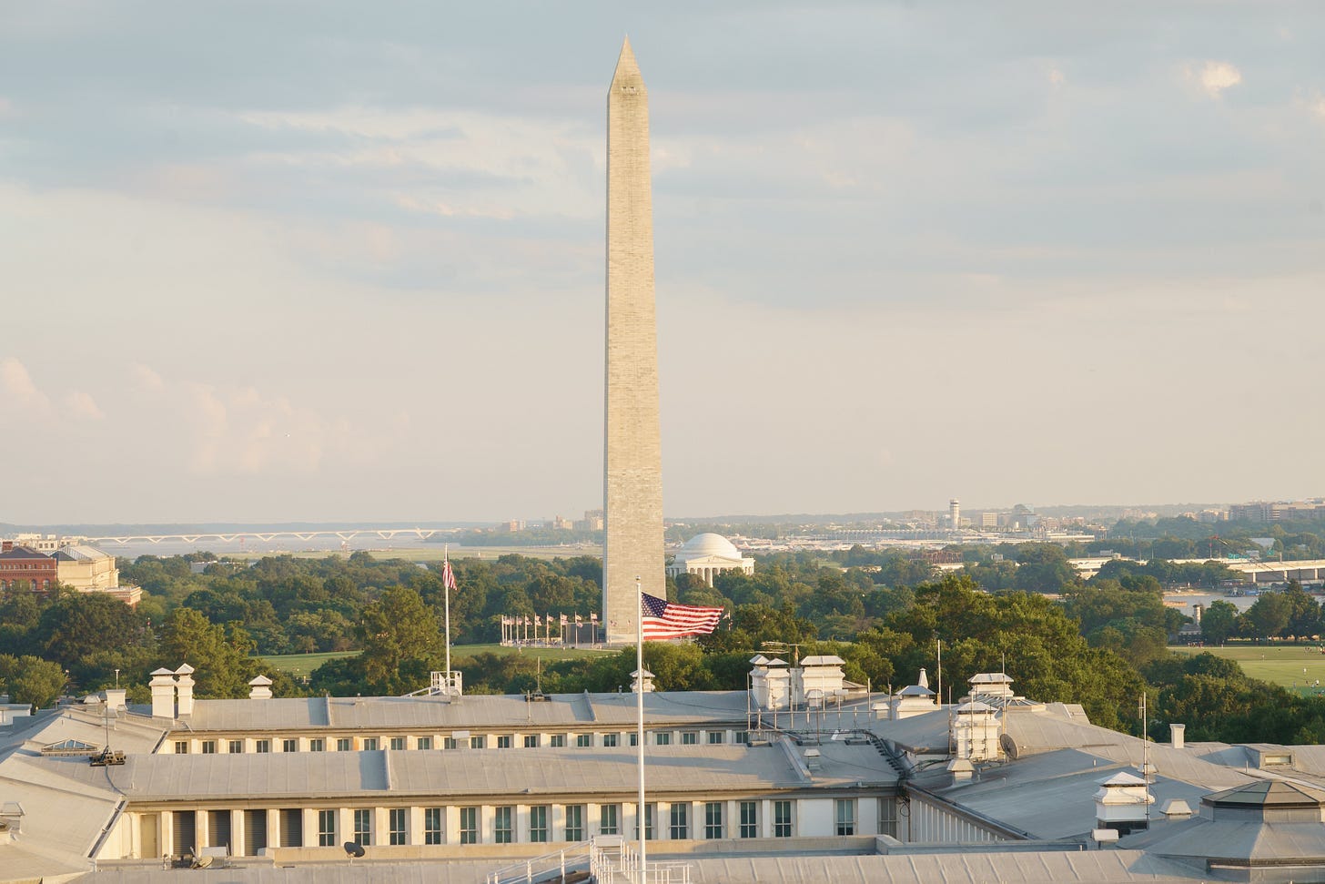 Influencers took one last iPhone shot of the golden-hour view of the Washington, DC skyline—then slid their phones into their clutches.