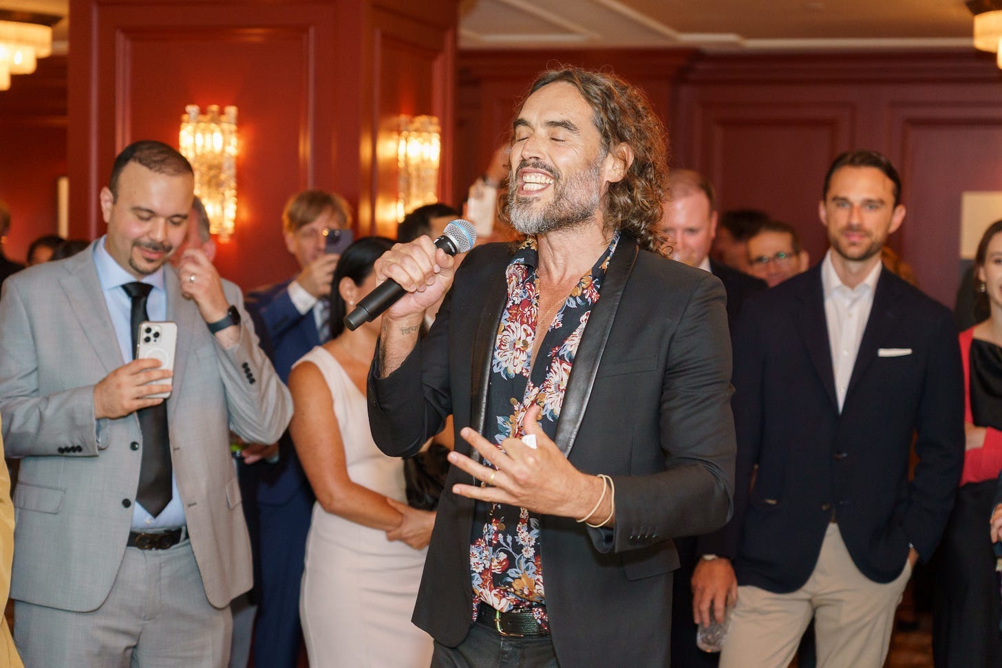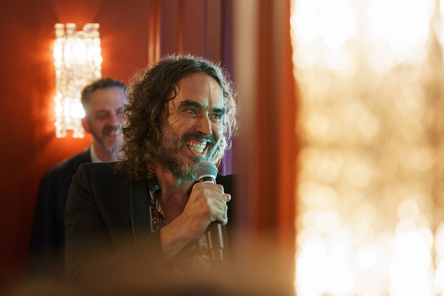 Russel Brand, one of the event’s scheduled speakers, glided toward the stage and launched into a reflective monologue.