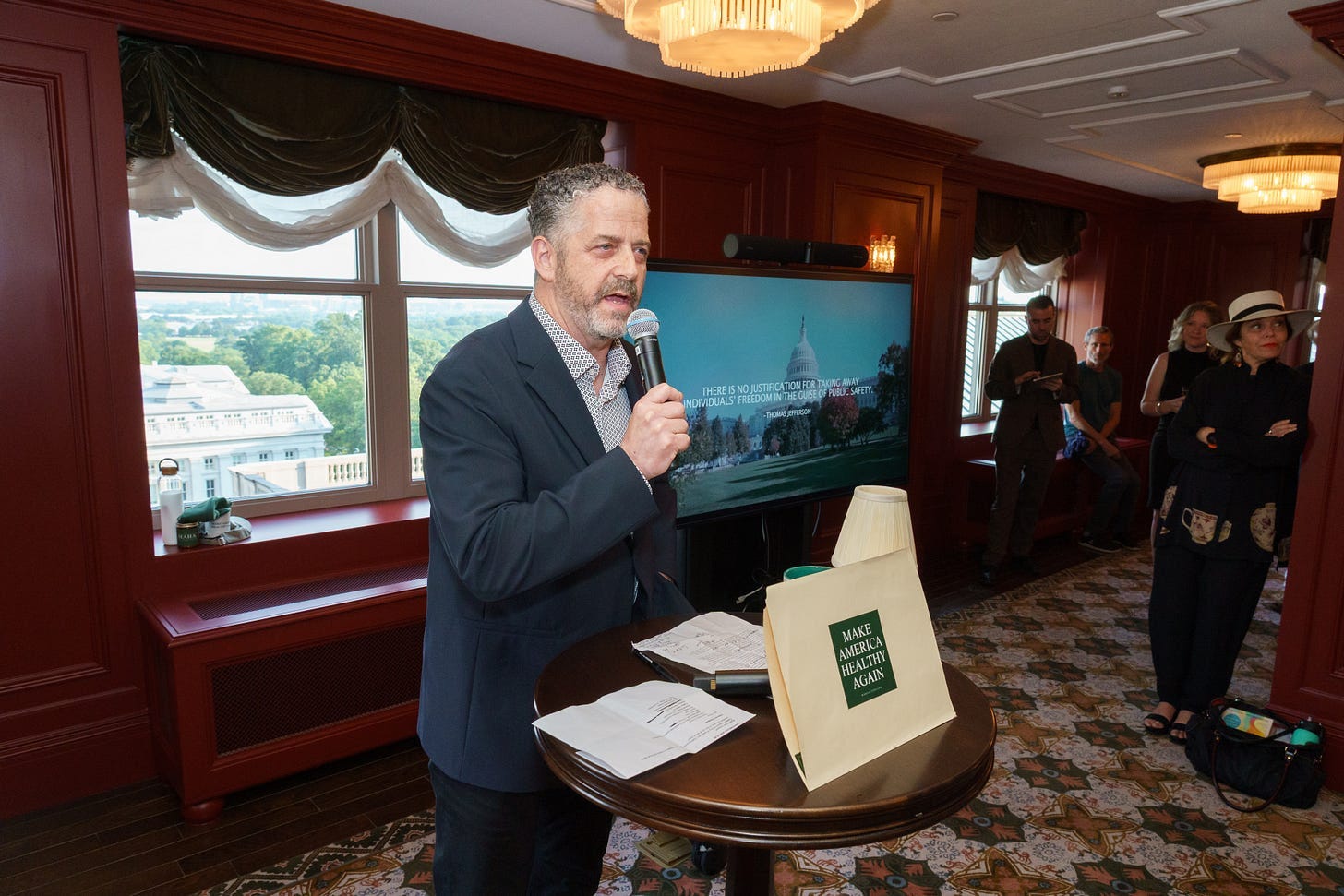 “Welcome to the MAHA Revolution,” a man’s voice echoed across the 9th floor of Ned’s Club on Monday evening, July 21, just as the sun began to dip behind the U.S. Treasury Building. Cocktail chatter stopped.