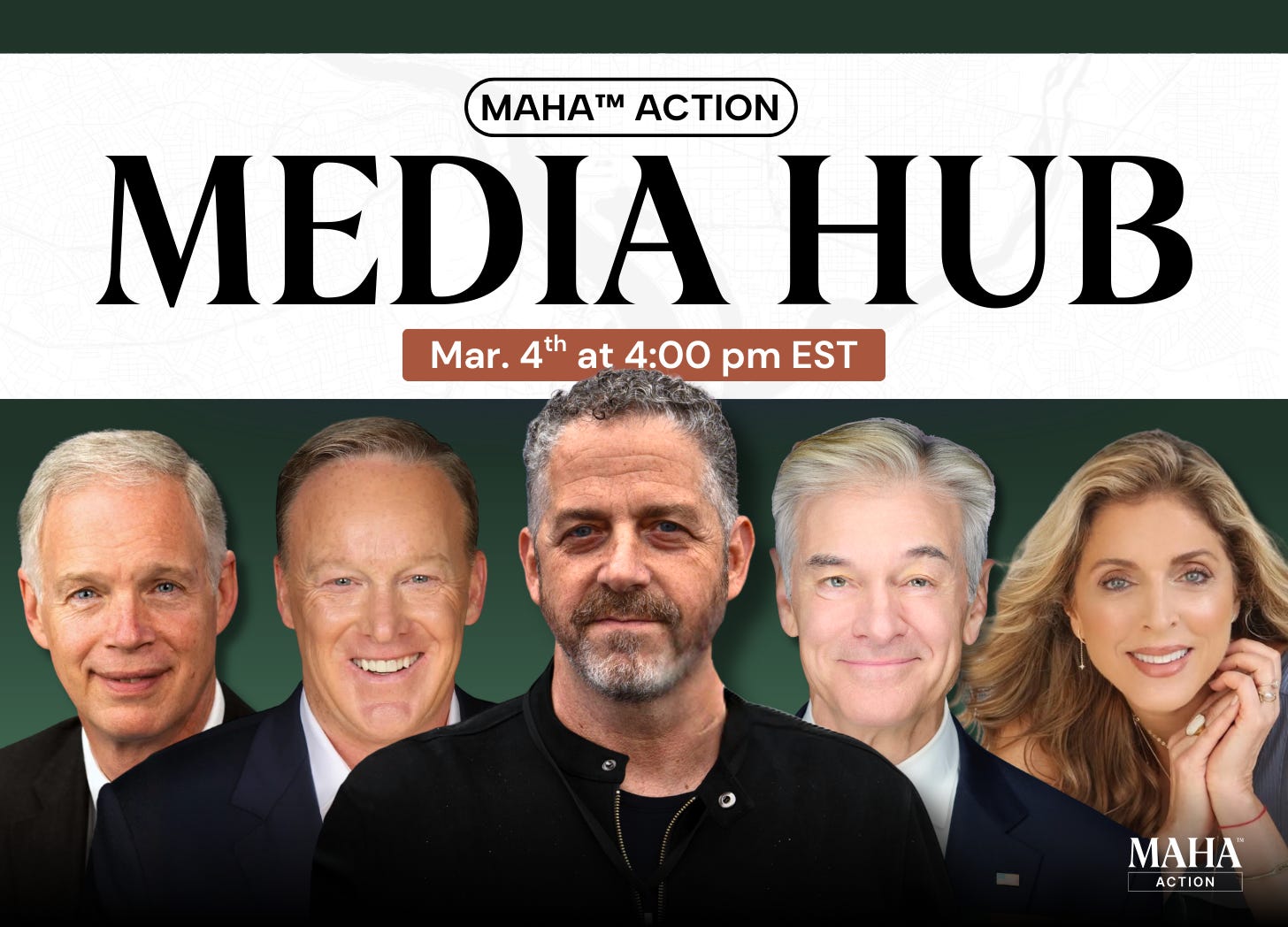 Please join us on Wednesday, March 4, from 4pm - 5pm Eastern, for the MAHA Action Media Hub, featuring some of the most informed minds in the MAHA movement.