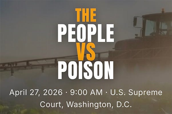 On Monday, April 27, the U.S. Supreme Court will hear arguments in the Monsanto Company v Durnell case, which centers on whether or not the plaintiff’s cancer was due to Monsanto’s ‘failure to warn’ of its product’s dangers. A protest called “The People v Poison” has been organized beginning at 9:00 a.m. to oppose granting legal immunity to chemical manufacturers like Monsanto for the harms caused by glyphosate and other chemicals.